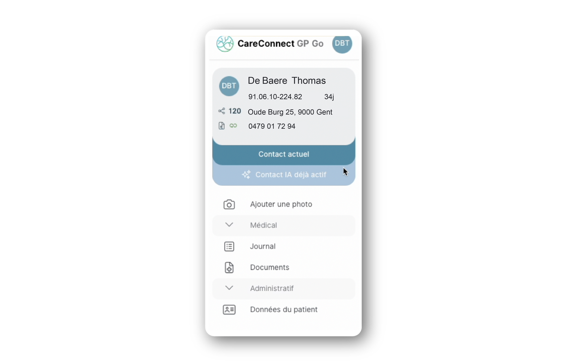 Les informations issues de la consultation sont converties et préparées selon la méthode classique éprouvée dans le rapport de consultation de CareConnect GP. Vous pouvez toujours ajouter du contexte, apporter l’une ou l’autre modification ou insérer une réflexion... Il vous suffit ensuite d’enregistrer et le dossier du patient est à jour.
